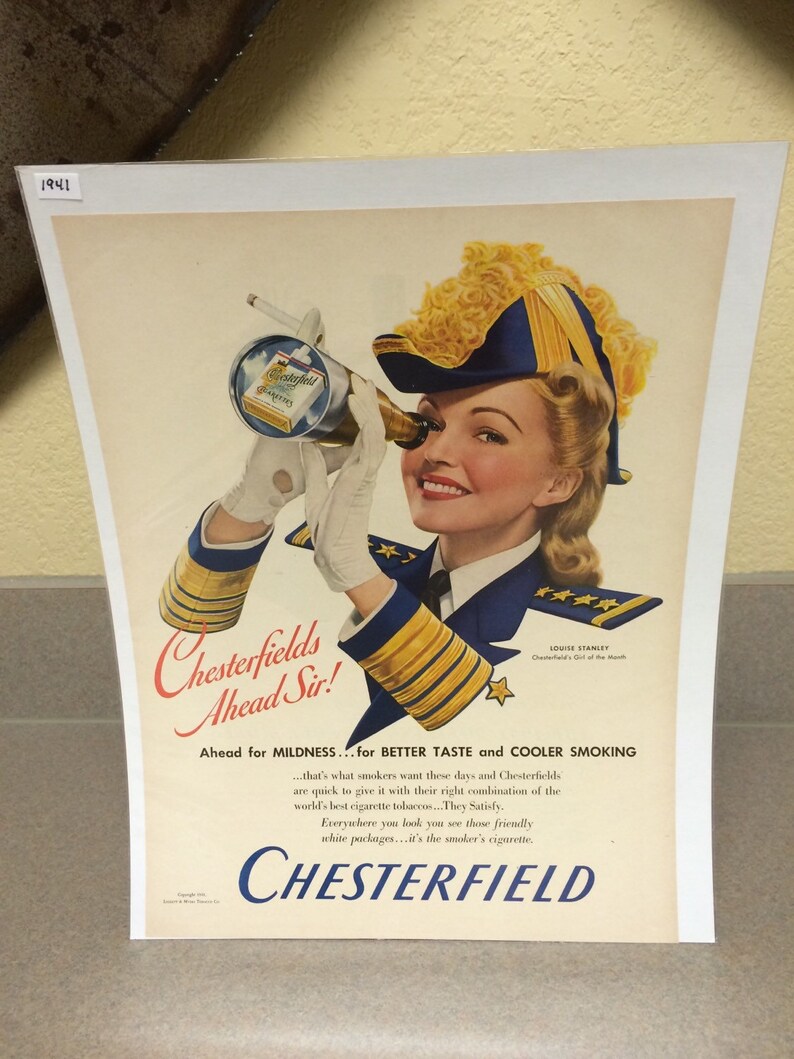 1941 Chesterfield Cigarette Ad Large 11x15 Approx Great Etsy